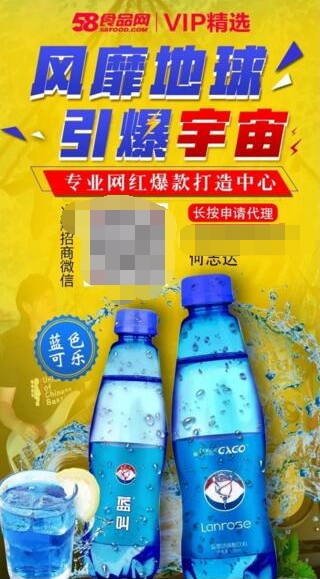 选产品,就要找市场没有的!那样你才能赚钱。蓝叫蓝色可乐,完全区别市场一些饮品。亮眼包装、独特口感,还未上市就引发微信平台的疯狂转发,吸引行业专家的关注,经销商的疯狂咨询和转发!